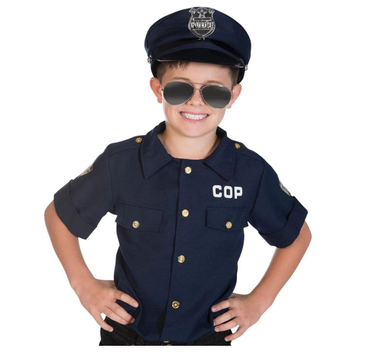 Diese Sonnenbrillen für Polizei, Piloten und Flieger mit rauchfarbenen Gläsern haben einen Pilotenstil mit dünnen Metallrahmen. Perfekt für Top Gun, TV Cop Drama, Piloten, Flieger oder Kostümzubehör oder Modelook der 1980er Jahre. Andere Flieger-, Polizeikostüme und Accessoires sind auf unserer Seite separat erhältlich – je nach Verfügbarkeit. Kostümstile können leicht variieren.