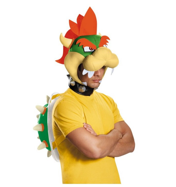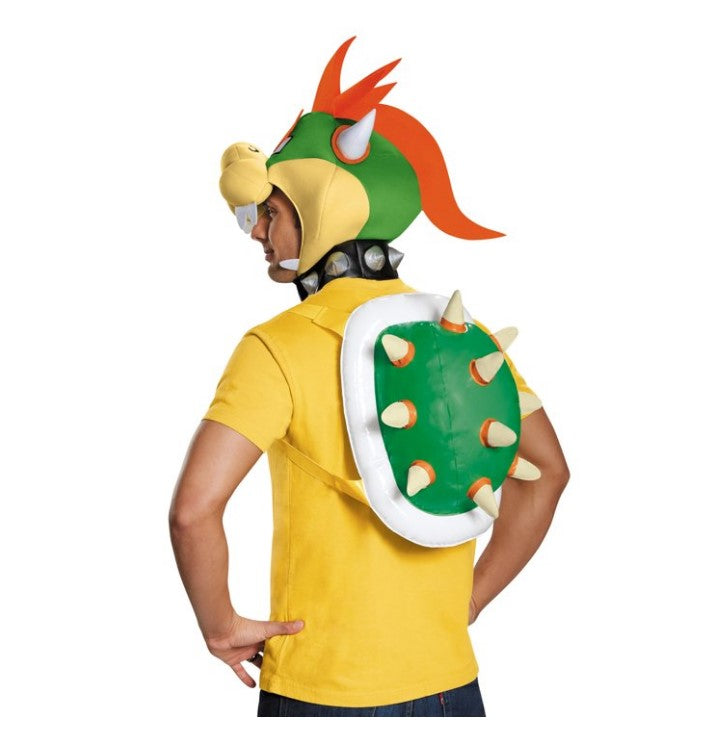 Bowser-Set – Super Mario Bros – Kopfbedeckung – Muschel – Kostümzubehör – Erwachsene