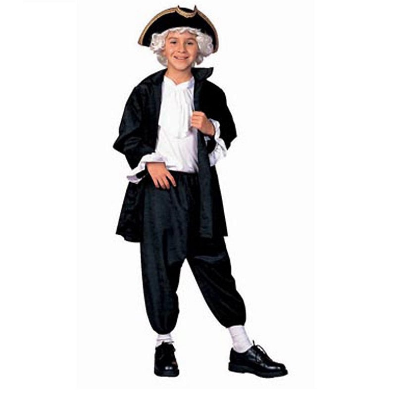 Dieser Kinder-George Das Kostüm von Washington/Alexander Hamilton besteht aus einer Jacke aus schwarzem Polyestersamt mit angenähte weiße Ärmelmanschetten, ein weißes Hemd mit angenähtem Jabot (Spitze Krawatte/Ascot) und dazu passende schwarze Hose mit Gummibund. Der Hut ist nicht enthalten. Ideal für Halloween, Theaterstücke, Schulprojekte und mehr. Verfügbar in zwei Größen Medium - 8-10 oder Large 12-14. Kostüme fallen normalerweise etwas kleiner aus als normal Kleidergrößen. Bitte entsprechend kaufen. Hut und Schuhe nicht enthalten. Andere Kostüme und Accessoires (Perücke, Schuhschnallen) werden verkauft separat auf unserer Seite – je nach Verfügbarkeit.
