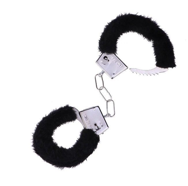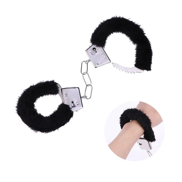 Handschellen mit Schlüssel - Schwarzer Plüsch - Metall - Kostümzubehör - Requisite