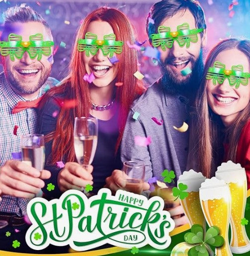 Kleeblatt-Shutterbrille – 1980er – beleuchtet – St. Patrick’s – Kostümzubehör