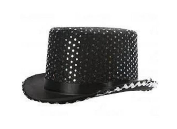 Zylinder – Zauberer – Schwarz/Silber – Pailletten – Kostümzubehör – Erwachsener Teenager