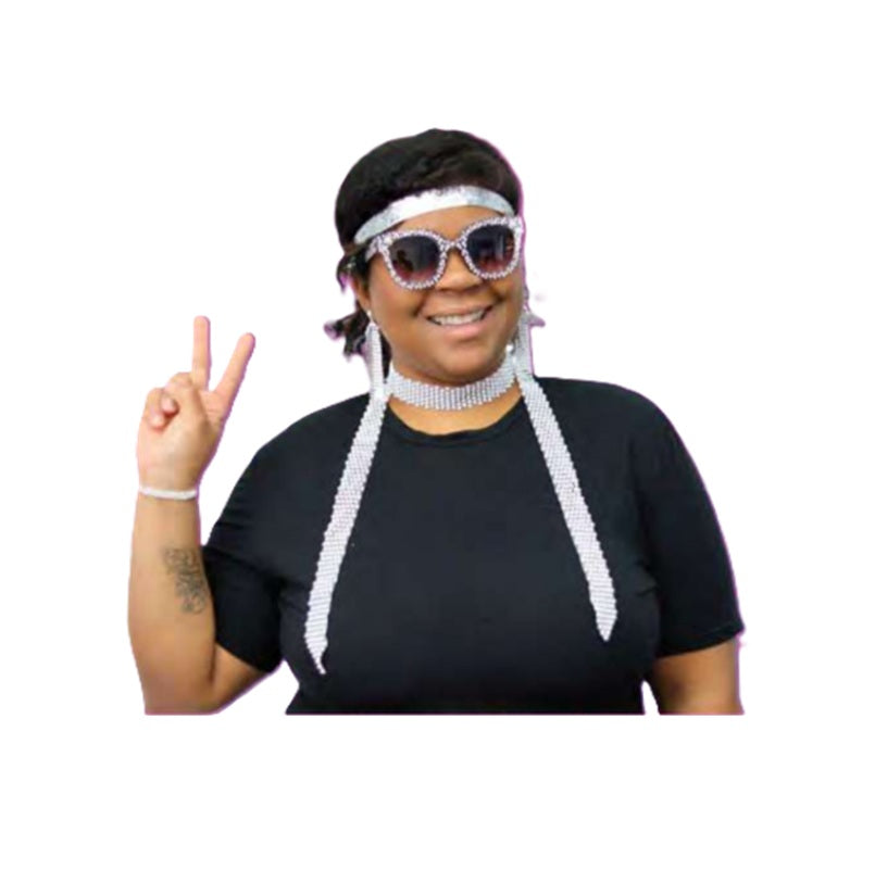 You'll look like you belong in a wild disco in this unisex costume accessory kit including matching silver sparkling sunglasses, headband, necklace, earrings and bracelet. They are perfect for disco, 1970's, 1980's, pride, rock stars, divas, aliens, Elton John, theatrical productions, Halloween, cosplay, everyday looks and more. Other disco costumes and accessories (wigs, other jewelry, theatrical makeup, hair extensions, face jewels, gloves, footwear...) are sold separately on our page – subject to availability. One size fits most teens and adults. The glasses are not for vision assistance.