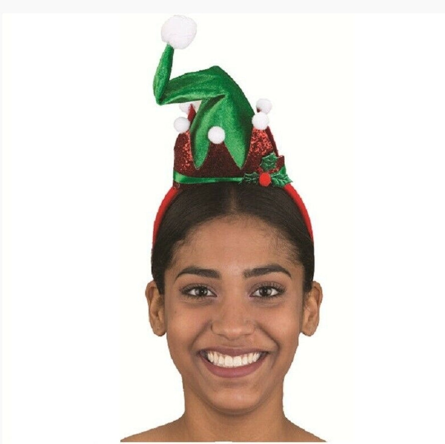 Elf Mini Hat Headband - Green/Red - Christmas - Costume Accessory - Adult Teen
