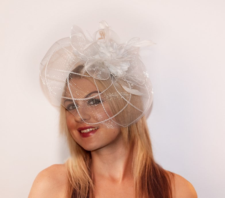 This lovely organza 1920's fascinator headpiece in red or white (each sold separately) features delicate beading, feathers, a delicate polka dot satin bow and a perfect flower in the center. It is perfect to wear for your next "Great Gatsby" Party, royal engagements, garden parties, Peaky Blinders looks, cosplay, Kentucky Derby and other horse races, New Year's Eve party, Jackie O and other 60's looks, Halloween, theatrical productions and more! One size fits most teens and adults. This fascinator measures approximately 13.5" by 10.25" wide, and 3.5" tall. Other 20's costumes and accessories (beads, cigarette holders, boas, gloves, leg wear, jewelry, theatrical makeup, wigs...) are sold separately on our page – subject to availability. It attaches to the hair with a pinch clip, mounted on a felt back. You could also clip it on to a headband for better fit and comfort.