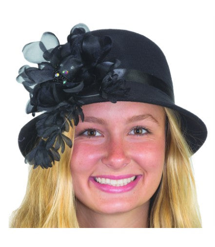Black Cloche Hat - 1920's - Flowers - Deluxe Costume Accessory - One Size