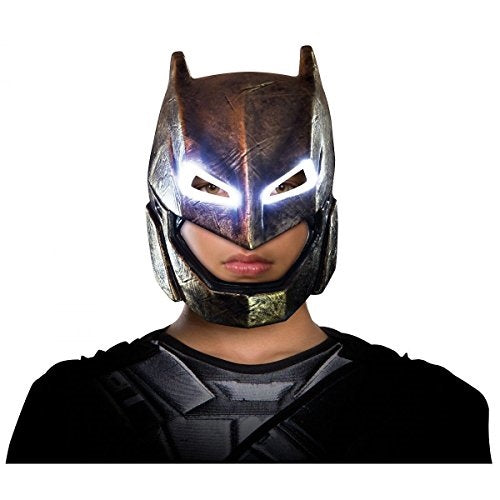 This Batman costume accessory includes an armored-look Batman costume 1/2 mask as seen in the movie Batman v Superman: Dawn of Justice. Our Batman mask is made of injection molded hard plastic that is durable and impact resistant. Fits most smaller teens and children. Costume not included. Other Batman costumes and accessories are sold separately on our page – subject to availability. Please note... this mask will not currently light up but may with the correct batteries.