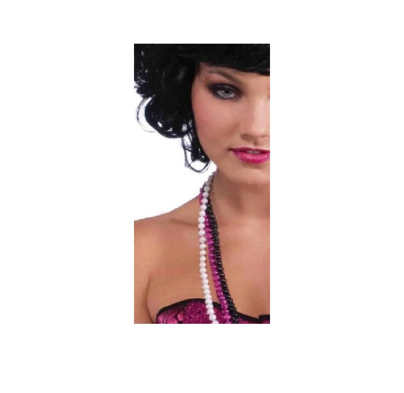 Add a more fun touch to your burlesque, flapper or 1980's pop star costume with these plastic beaded necklaces. One of each color (Hot Pink, Black, White) per package - 3 strands total. Other burlesque, 80's and flapper costumes and accessories (theatrical makeup, headpieces, gloves, face jewels, wigs, hair extensions and bows...) are sold separately on our page – subject to availability.