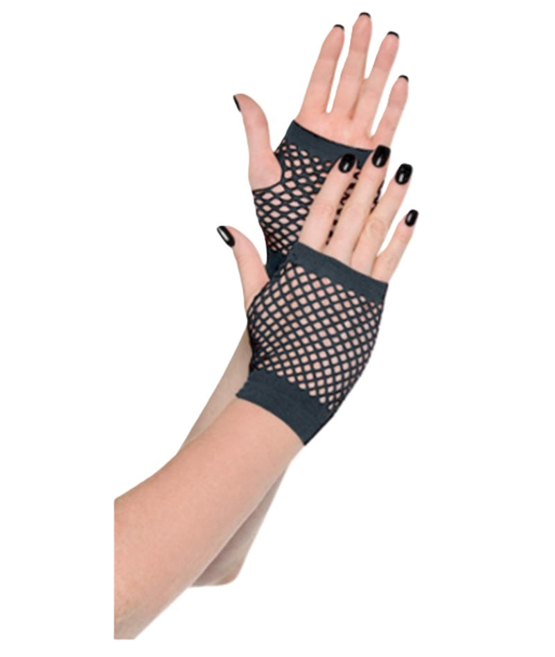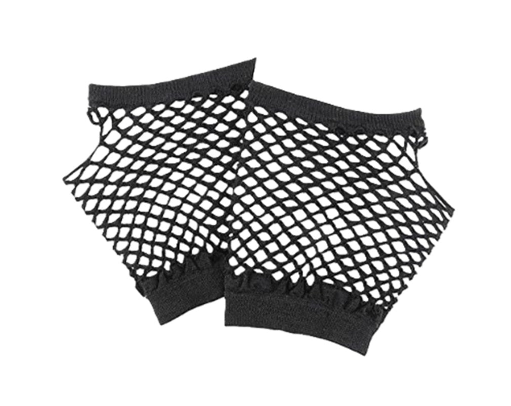 This pair of black glitter short, stretchy, fishnet fingerless gloves with reinforced band at wrist and top are perfect for 80s, rock star, celebrities and other costume themes for Halloween, cosplay, theatrical productions, theme parties and other special events! Made of flexible, stretchable material and fits most teens and adults. Other 80's costumes and accessories are sold separately on our page – subject to availability.