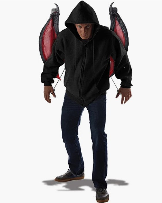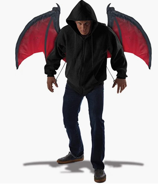 The skies are running red. These Bloodnight Wings can open and close! Worn like a backpack with elastic shoulder straps, each wing has a corresponding string that can be manually pulled down for movement. The wing set has a 4' span. The set folds in half vertically. They are perfect for Halloween, demons, devils and other creatures of the night, theatrical productions, dress up, cosplay and more. Other devil and demon costumes and accessories are sold separately on our page – subject to availability. One size fits most larger teens and adults.