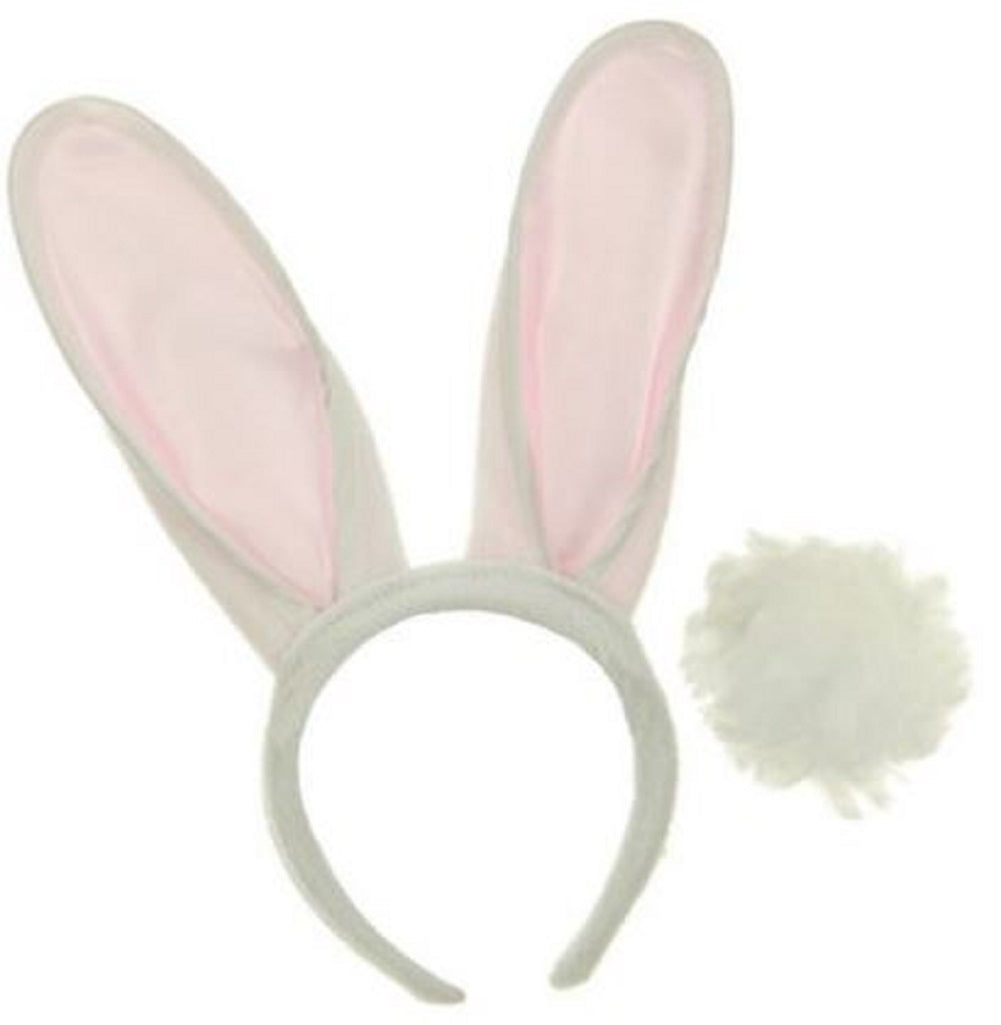 Bunny Rabbit Ears & Tail Set - White/Pink - Easter - Costume Accessories