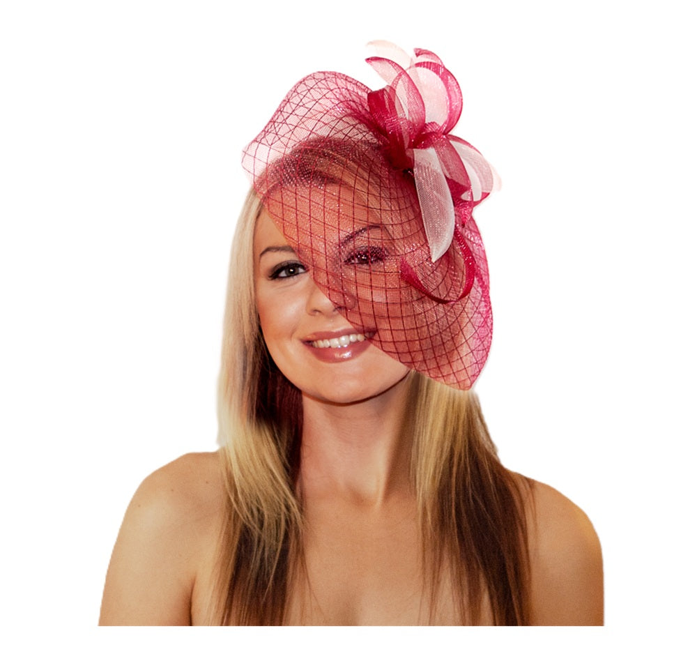 Burgundy/White Fascinator - Derby - Royal - 20's - Costume Accessory - One Size