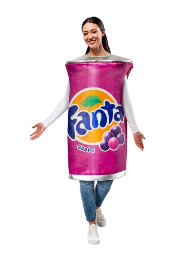 "Wanta Fanta?" - Pop open a can of your favorite grape soda (from Coca-Cola) and kick back with friends when you are wearing this Adult Unisex Can of Grape Fanta Costume. Featuring a fun foam purple tabard tunic showing the famous grape logo that will have you thirsty for more. You'll be popping the tab off for a Cheers with friends in no time. Shoes, costume accessories and other costumes are not included. Other pop culture, food and beverage costumes and accessories are sold separately on our page – subject to availability.