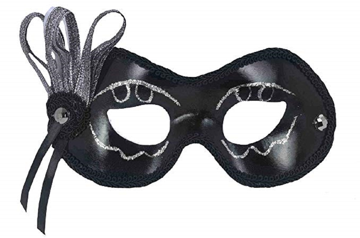 These Mardi Gras half masks have a metallic design embellished with exquisite trim, faux gemstones, ribbon and glitter. These masks are perfect for Mardi Gras, masquerade balls, proms, Halloween, cosplay and more. Available in Black, Gold or Silver for a variety of looks - each sold separately. One size fits most adults and teens. Other costumes and accessories (scepters, props, theatrical makeup, jewelry, wigs...) are sold separately on our page – subject to availability.