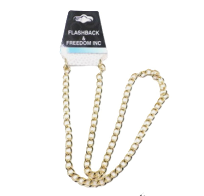 Get ready to shine like a superstar with our 28-30" gold chain. This stunning accessory is the ultimate statement piece, featuring a gold color that will add a touch of luxury and bling to any outfit. Unleash your inner rapper and stand out from the crowd with this unique chain. This gold-look chain necklace is made of lightweight but sturdy metal. Perfect for 80's or 90's parties, hip hop and rock stars, pimps, cosplay, Halloween and more! Other 80's costumes and accessories (hats, glasses, theatrical makeup, canes, wigs...) are sold separately on our page - subject to availability. One size fits most adults and teens.