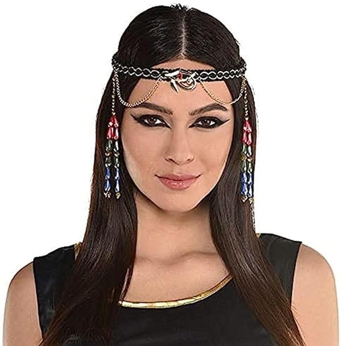 This lightweight, multicolor, beaded Egyptian headpiece captures the essence of ancient Egypt. It is perfect for costume parties, disco looks, roaring 1920's (Juliette Cap), royal accessories, pride, themed events, Halloween, theatrical productions and more. Stand out in style and turn heads with this eye-catching accessory. This pretty headpiece fits most teens and adults. Other Egyptian and 20's costumes and accessories are sold separately on our page – subject to availability.