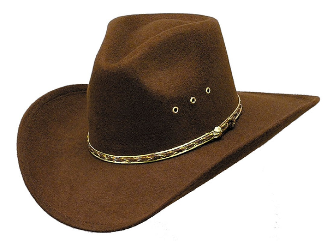 This Brown Cowboy Cowgirl front pinched hat made of felt on a shaped, formed cardboard backing is perfect for Halloween, cosplay, theme parties, concerts, pop stars, rodeos, camping, ladies’ nights, bachelorette parties, pop stars, theatrical productions and more! The band color may vary slightly from hat to hat. Other cowboy, cowgirl, western costumes and accessories (other western hats, wigs, eyelashes, masks, glasses, theatrical makeup, gloves, bandanas, badges, jewelry, leg wear...) are sold separately on our page – subject to availability. Available in unisex Adult size Small Medium - may also fit some larger teens. There is a sizing band inside to allow for several sizes to wear each hat. Slight color variations in computer monitors, mobile devices and tablets may exist.