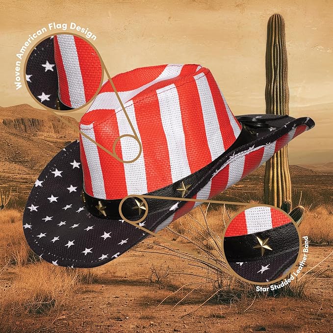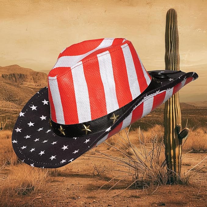 Cowboy Hat - American Flag - Star Medallions - Costume Accessory - One Size