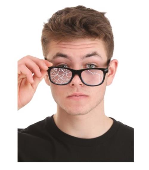 These black novelty eye glasses are made of plastic and have lenses printed with a shattered design. They are perfect for nerds, clumsy hipsters, cosplay, theatrical productions, Clark Kent (aka Superman), 50's era styles, accident victims, theme parties, a funny doctor and more. One size fits most teens and adults. There is no magnification This is a costume accessory prop only. Other costumes and accessories are sold separately on our page – subject to availability.