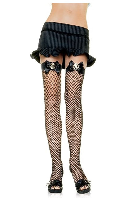 These diamond net thigh high stockings with Dollar Sign and Bow appliques are perfect for 1920's gangsters, flappers, cops and robbers, pimps, cosplay, theatrical productions, Halloween, clubbing and more. One size fits most 90-165 lbs. Costume accessories tend to run smaller than regular clothing sizes. Please purchase accordingly. Costume and shoes not included. Other costumes and accessories are sold separately on our page – subject to availability.