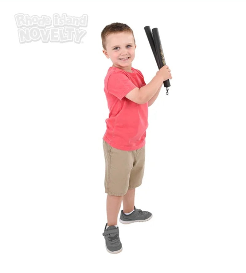 Every master of martial arts (or even those playing one for Halloween) must have their trusty nunchucks! Complete your or your child's ninja costume with these black foam Nunchucks with gold foil dragon designs. These Nunchucks props are perfect for Halloween, Ninja Turtles, birthday and holiday gifts, school plays and projects, practicing martial arts, dress up safe fun that improves hand-eye coordination, cosplay and more. Includes one set (one pair) of costume foam nunchucks attached by a string. Other Ninja costumes and accessories (ninja sets, plastic sai, swords, other weapon props...) are sold separately on our page – subject to availability. Works well for adults, teens and children - pretty much everyone.