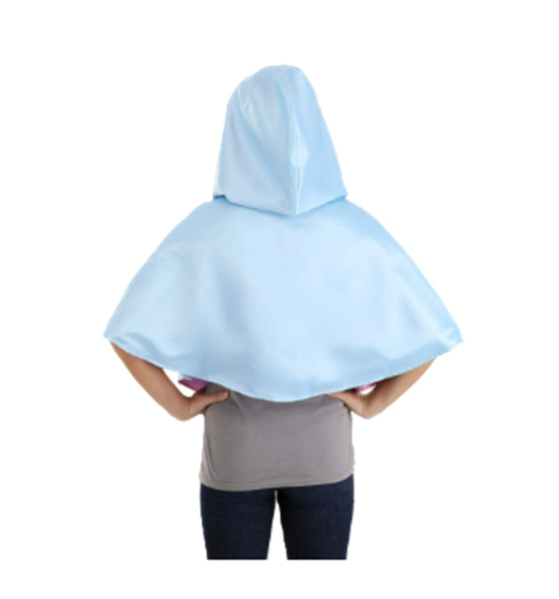 The soft blue satin capelet (made of polyester and spandex) drapes gently over your shoulders and closes in front with hook & loop fastener behind her signature oversized pink bow. The hood is lined with soft pink satin. You will become a total icon! With a wave of your magic wand, Cinderella will be off to the ball! She's lucky that you are her fairy godmother. One size fits most teens and adults. The costume and wand are not included. Other Cinderella and Fairy Godmother costumes and accessories (wands, wigs, headpieces, face jewels, jewelry, hats, theatrical makeup...) are sold separately on our page – subject to availability. Spot clean. Air dry.