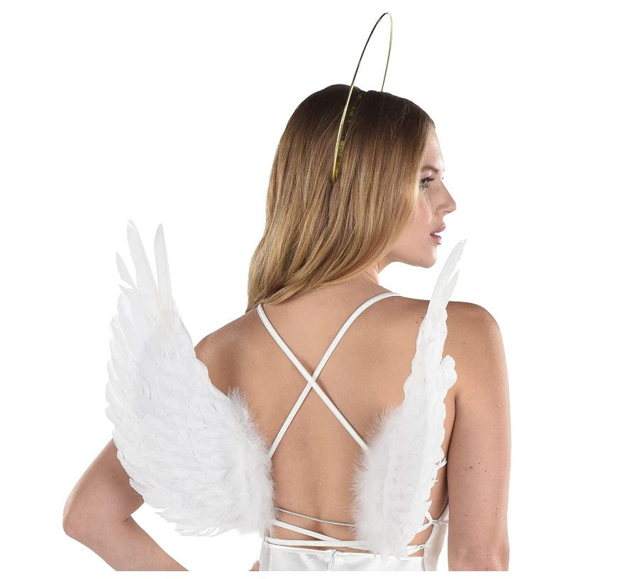 These white "floating" wings give the beautiful illusion of floating off your back and are perfect for birds, angels, cupid, fairies and other winged creatures for Halloween, Christmas, Easter, cosplay, pageants, Valentine's Day, theatrical productions, school events, dress up fun and more! One size fits most larger children, teens and adults. This item features a plastic tube wrapped wire bracket and feathered wings measuring 18" high and 16" wide. Elastic straps hold them comfortably in place for easy wear. Other angel and bird costumes and accessories (floating halo, theatrical makeup, harp props, wigs, face jewels, hair extensions...) sold separately on our page - subject to availability.