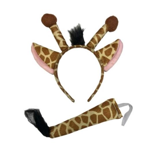 This plush giraffe costume accessory set includes headband with ears (tuft of hair) and a tail. One size fits most adults, teens and larger children - may look different on each age group. Pair with additional costume pieces for a full animal costume or wear with everyday clothing. Perfect for Halloween, school plays and projects, theatrical productions, dress up, cosplay and more. Other animal costumes and accessories are sold separately on our page – subject to availability.