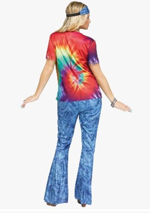 This hippie costume is perfect for 60's and 70's parties, Halloween, theatrical productions, festivals and more! Includes tie dye top with attached vest, soft and flowing crushed velour bell bottoms and a matching headband. Other costumes and accessories (wigs, jewelry) are sold separately on our page – subject to availability. Available in adult size Small/Medium or Medium/Large. Costumes typically run a little smaller than regular clothing sizes. Please purchase accordingly. Footwear not included.