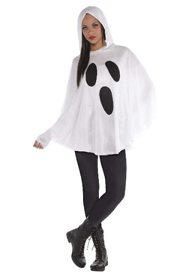 Hooded Ghost Poncho - Lightweight - White/Black - Costume - Women - One Size
