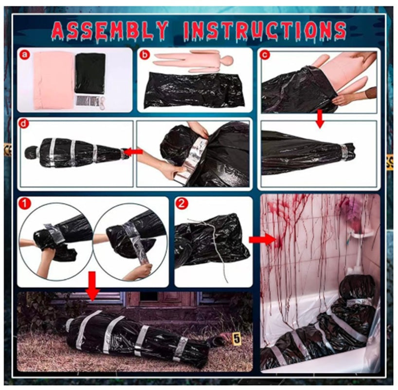 This inflatable mannequin body in black (some attached images show neutral color) is perfect for use in a body bag, coffin, or dressed up for a great prop! This full-size inflatable body measures approximately 72" long and is made of a soft pliable plastic. It is very easy to transport and inflate anywhere you need a life-sized figure. This is a versatile way to jazz up your next haunted scene, Halloween party, porch, cosplay event, trade show, haunted house or hayride, scarecrow, cemetery or graveyard decoration set up, school decorations, theme party, theatrical production and more. Other decorations (arms, feet, hands, skulls, full skeletons...) are sold separately on our page - subject to availability.