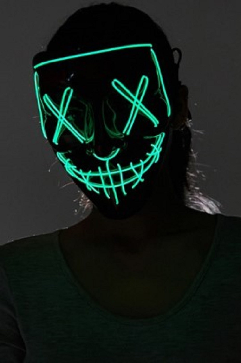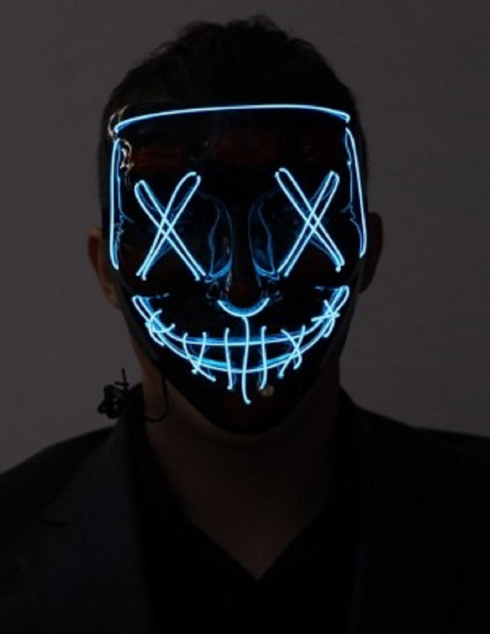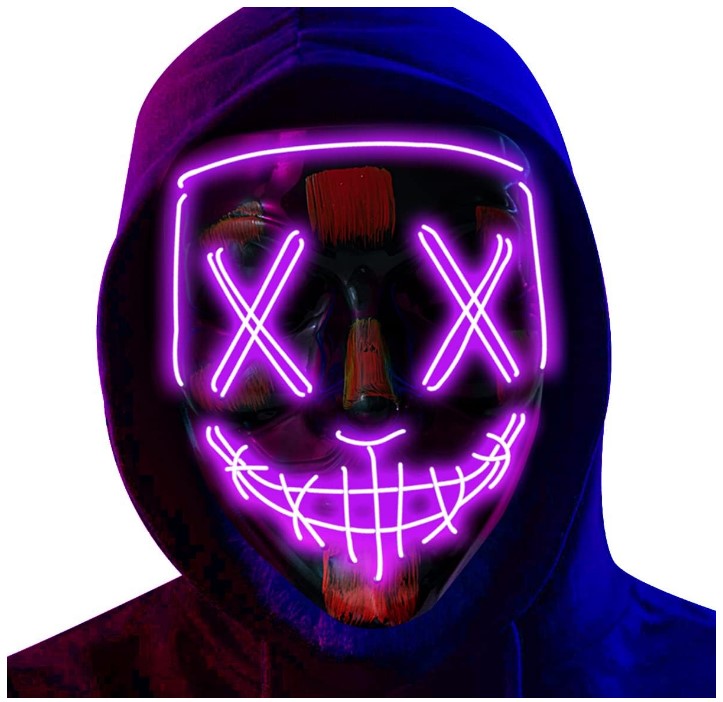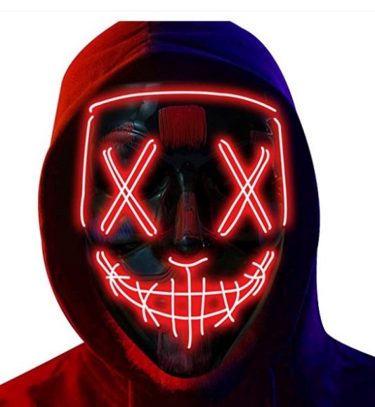 These black plastic masks with LED crosshatch lights and faux blood splotches are perfect for Halloween, cosplay, The Purge, raves, clubs, masquerades, costume parties, Mardi Gras, Carnival, dress up and more! Each color (Blue, Green, Red Orange or Purple) is a separate mask - there are no adjustable color modes in this mask. One size fits most adults and teens. Spot clean with a damp cloth. Other costumes and accessories (weapon props, theatrical makeup, wigs, jewelry...) are sold separately on our page – subject to availability. Batteries not included.