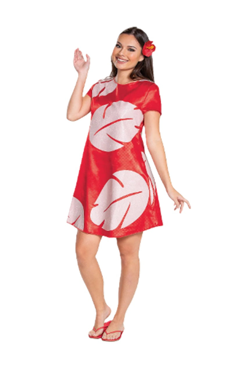 Lilo Pelekai is one of the two titular main protagonists (alongside Stitch) of Disney's Lilo & Stitch franchise. She is the younger sister of Nani Pelekai and was orphaned alongside Nani after losing their parents due to a car accident. She lives on the Hawaiian island of Kauai with her sister and her extended family of alien visitors marooned on Earth: Stitch, Jumba, and Pleakley. Lilo is a 6-year-old (7 at the end of Lilo & Stitch) Hawaiian girl with long, straight black hair and brown eyes. This red deluxe tropical Lilo costume dress with white hibiscus detail feels soft on the skin and comes with a matching fabric flower hair clip. This deluxe costume comes in women's sizes Medium 8-10 or XL 18-20. It is also perfect for luaus, summer celebrations, school events, trips to Disney, watch parties, play dates with your littles and more. Costumes typically run a little smaller than regular clothing sizes. Please purchase accordingly. Footwear is not included. Other Lilo & Stitch, luau costumes and accessories (wigs, headpieces, jewelry, Stitch costumes & accessories, theatrical makeup, Polynesian, Hawaiian & luau accessories...) are sold separately on our page – subject to availability. Hand wash cold water with mild soap. Hang or lay flat to dry.