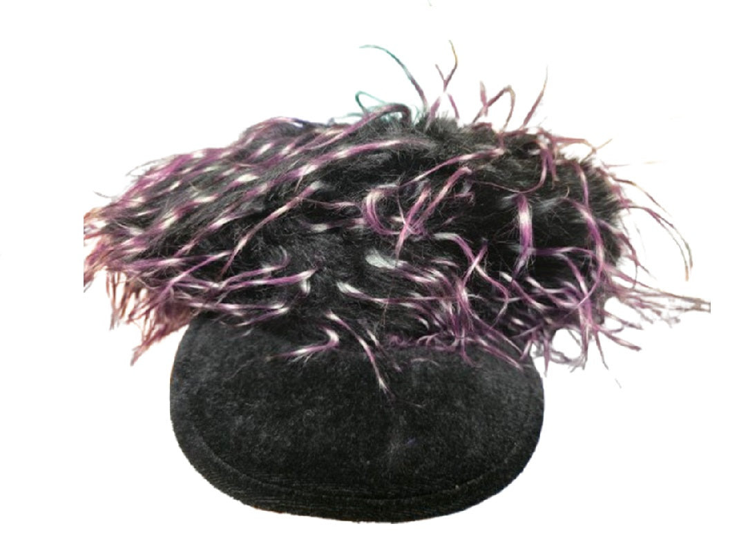 Make a statement and step back in time with this purple and black 60's to 70's disco style furry (polyester) newsboy, Applejack cap, a chic addition to any wardrobe or costume. This cap features an adjustable Velcro closure for a variety of head sizes - one size fits most adults and larger teens. The velvety black bill not only adds to the cap's classic aesthetic but also provides practical sun protection. Its timeless style makes it an excellent accessory for disco events, pimps, rock and pop stars, theatrical performances, Halloween, decade dances and more. Other disco costumes and accessories (jewelry, theatrical productions, footwear, glasses, wigs, canes...) are sold separately on our page – subject to availability. Slight color variations in computer monitors, mobile devices and tablets may exist.