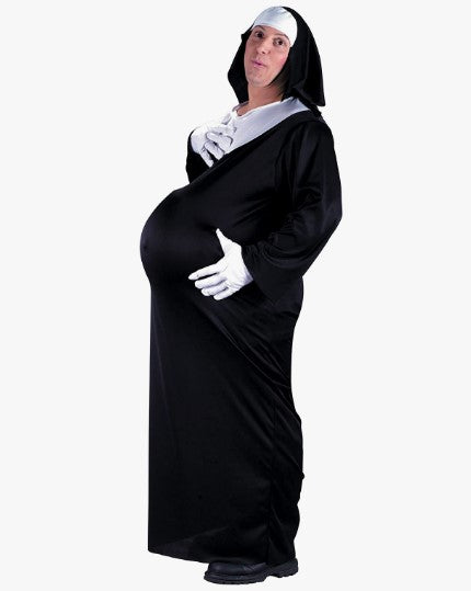 This Nun is a 'superior' costume for comfort and ease! It features a no "Nunsense" robe, habit, gloves and inflatable tummy. Hand wash in cold water, do not use bleach, line dry, do not iron. Available in One Size (up 6' 200 lbs. This costume is very forgiving and may fit slightly larger sizes. Cross, footwear & glasses not included. Other nun & religious inspired costumes and accessories (cross, glasses) are sold separately on our page - subject to availability. Perfect for Halloween, gags, cosplay and more.