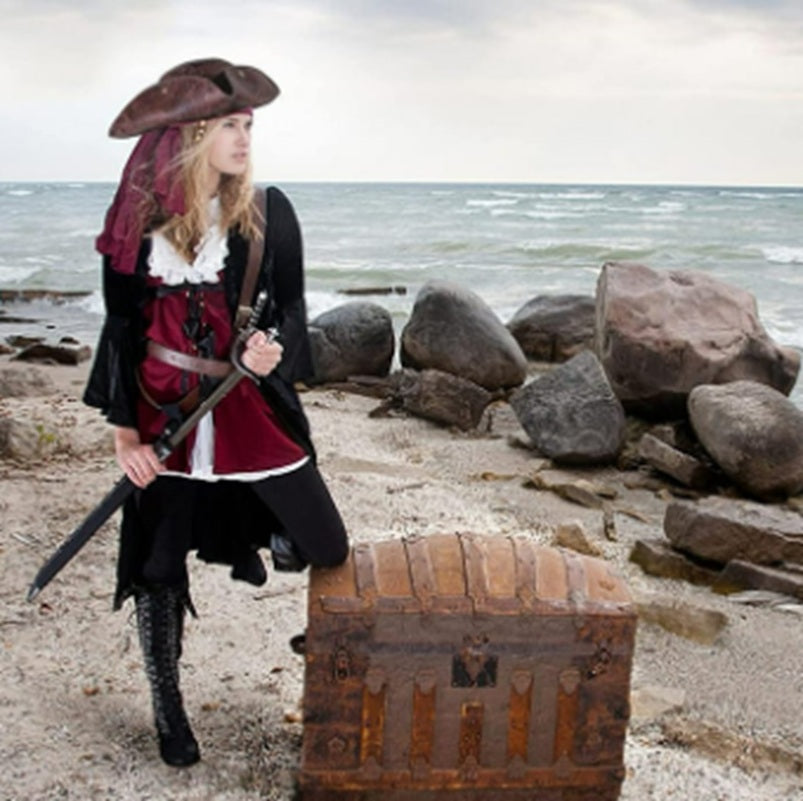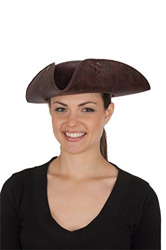 This unisex distressed look faux leather (polyester) tricorn pirate colonial hat is comfortable to wear and perfect for costumes and performances for Halloween, cosplay, pirate weekends, colonial days, theatrical productions, pirate themed events, school plays and projects and more. This comes with the hat only. Other pirate and colonial costumes and accessories (earrings, eye patches, parrot and other props, wigs, weapon props, jewelry, hair extensions, gloves, jabots, shoe buckles, leg wear, theatrical makeup, facial hair...) are sold separately on our page – subject to availability. You can also add feathers and embellishments (not included) to personalize your hat any way you would like!