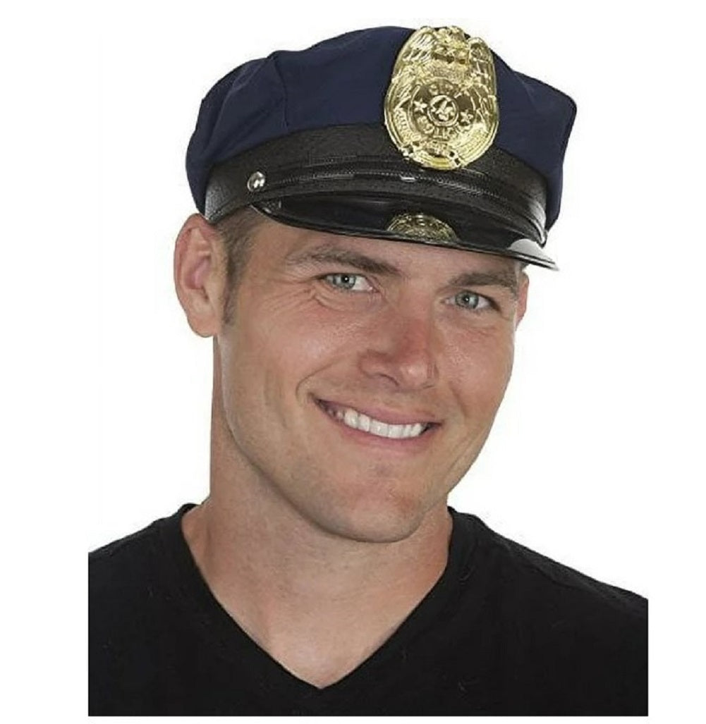 Navy Blue Police Hat - Gold Badge - Costume Accessory - One Size Adjustable
