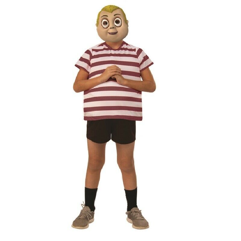 Can your child eat five pieces of cake at parties? At the costume party, your little guy may not even attempt Pugsley's claim to fame, but he can certainly dress the part of the always-hungry and naughty Pugsley Addams. Costume includes Jumpsuit with oversized belly and 1/2 mask. Perfect for Halloween, cosplay, theme parties, Wednesday watch parties, theatrical productions and so much more! Available in boys sizes Small 4-6 or Medium 8-10. Costumes