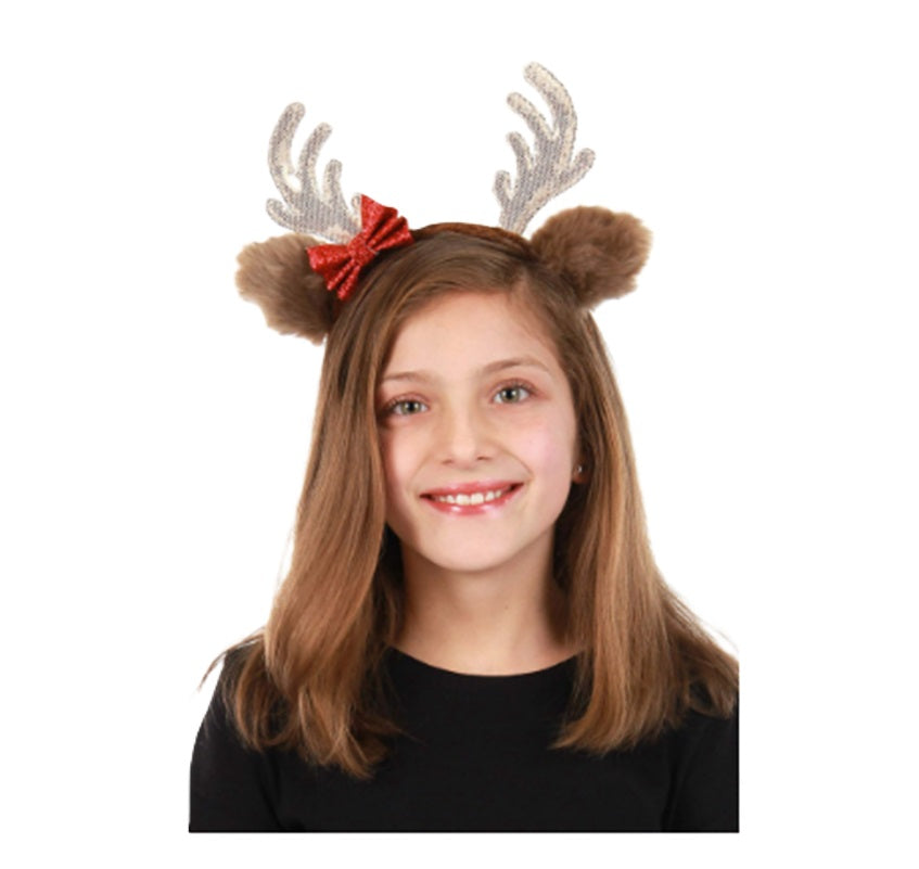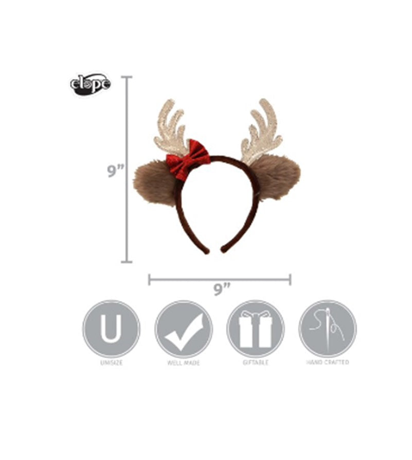 In a Open Sleigh, ready to go dashing through the snow? With the holiday season comes images of presents, glowing trees, Santa and his famous reindeer. Whether you prefer Dasher or Dancer or Prancer or Vixen, this Reindeer headpiece with a glitter bow and antlers is for you! Kids and adults alike will enjoy wearing this festive headband. From the little brown furry ears to the adorable red sparkling bow, this sweet headband is sure to put everyone in the Christmas spirit. Even the white antlers sparkle for a bit of added holiday cheer! Whether you want to go all out with a reindeer costume or just want a cute accessory to wear to the office or school, we're confident that this antlered headpiece will give you that extra holiday oomph you are looking for. Rep the underdog reindeer, Rudolph, with a little red sponge nose or even some makeup painted on (not included). Keep it simple with a dress or blazer, or pair them with your favorite ugly Christmas sweater. (It's ok, we all know it's really your favorite sweater!) Now, where's the hot chocolate and the holiday cookies? Reindeer work hard and deserve all the treats! One size fits most everyone. Other reindeer and Christmas costumes and accessories are sold separately on our page – subject to availability.