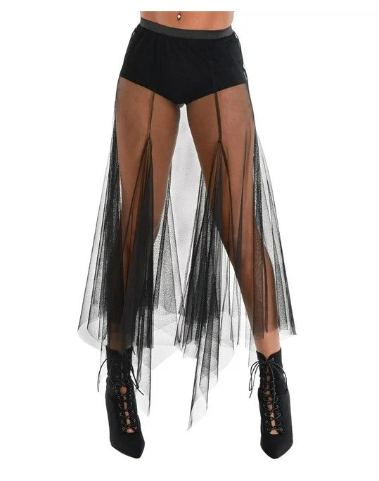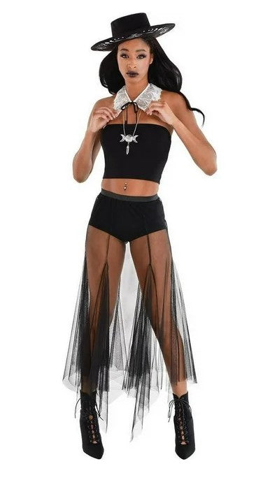 Take your look to the next level with this very versatile black Sheer Skirt. This unique and eye-catching design will turn heads and show off your style. Crafted from a lightweight and breathable fabric, it is perfect for all day wear and can be dressed up or down depending on the occasion. It features an ankle length that gives you an elegant silhouette, as well as see through details for a touch of added fun and flirty appeal. Perfect for nearly any look including witches, dance teams and routines, 90's looks, pirates, fairies, goth, Halloween, cosplay, evil queens, club night, 70's disco and more. Available in Women’s size Large XL (Dress Size 10-16, Waist-34", Hips-45") or Small Medium (Dress Size 2-8, Waist-28 1/2", Hips-39"). We recommend the next size up if you are having difficulty deciding between two sizes. Costumes typically run a little smaller than regular clothing sizes. Please purchase accordingly. Other costumes and accessories (hats, jewelry, crowns, scepters, tiaras, lingerie, leg wear, wigs, brooms...) are sold separately on our page – subject to availability. Footwear, panties, collar, jewelry and crop top not included.