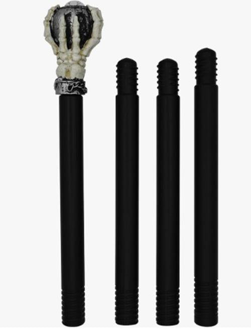 Accessorize your Skeleton, Witch Doctor, Mardi Gras, voodoo, Halloween or cosplay costume with this 44.5" black and silver skull cane (cane only) featuring Skeleton Hands and Wiggly Eye Ball! This costume accessory is composed of lightweight plastic, is collapsible - breaks down into pieces to allow for better storage and shipping - also allows children, teens or adults to use it! Perfect for Mardi Gras, Halloween, cosplay, theme parties or stage productions. This is not intended for medical purposes. Costume, hat and mask not included. Other Mardi Gras, skull, voodoo costumes and accessories (hats, headpieces, theatrical makeup, gloves, jewelry...) are sold separately on our page – subject to availability. **Not actual cane/walking stick. Will not support any weight. This costume accessory is not to be used a safety device This item is made of hollow plastic. **