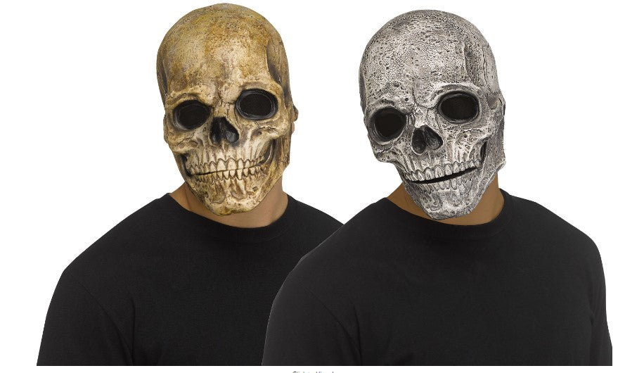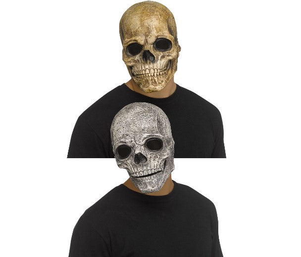 This lightweight overhead skull moving mouth mask is great for cosplay, Halloween, theatrical productions, theme parties, Pirate Weekends, reapers and more. This mask is nicely sculpted and realistic. It comes in 2 color looks - Brown (old, decayed) or Gray White (haunting). Other skull and skeleton costumes and accessories (theatrical makeup, gloves, robes, cloaks...) are sold separately on our page – subject to availability. One size fits most adults and teens - may fit some larger children.