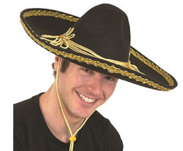Large Sombrero Hat - Black/Gold - Deluxe Costume Accessory - One Size