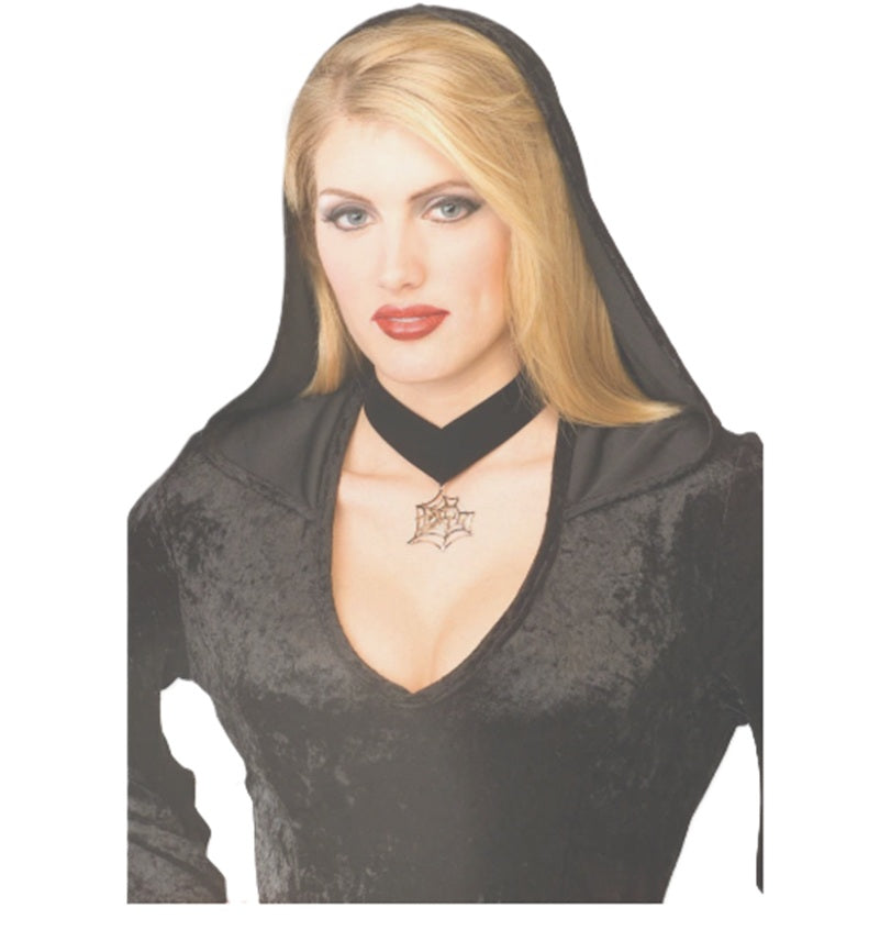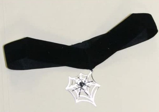 No witch, vampire or other creature of the night outfit would be complete without this economy style black velvet ribbon collar with silver-tone spider web charm. This choker closes with Velcro. One size fits most teens or smaller adults. Other punk, witch and vampire costumes and accessories (theatrical makeup, face jewels, wigs, hair extensions, hats, jewelry...) are sold separately on our page - subject to availability.