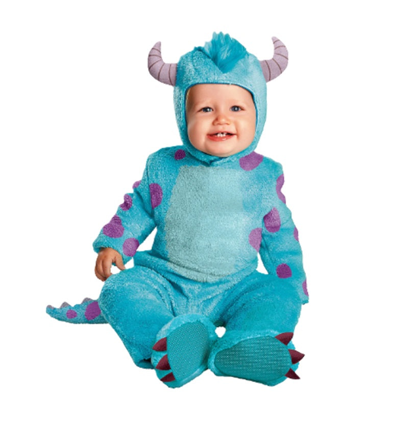 Cutest monster ever! From Pixar's very funny Monsters Inc movie, here comes your and your little one's favorite monster, Sully! The colorful turquoise jumpsuit with purple spots has a detachable tail and comes with a matching headpiece with a furry mohawk and soft horns and a pair of booties with felt claws and a non-skid sole. This one piece jumpsuit is available in Infant Size 12-18 Months. Costumes typically run a little smaller than regular clothing sizes. Please purchase accordingly. Other Monsters Inc. and Disney Pixar costumes and accessories (headpieces, ears & tail sets, theatrical makeup, hats...) are sold separately on our page – subject to availability. Hand wash or spot clean.