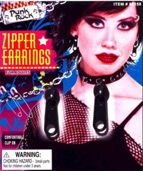 Clip on Zipper Earrings - Black - 80's - Costume Accessories - Teen Adult