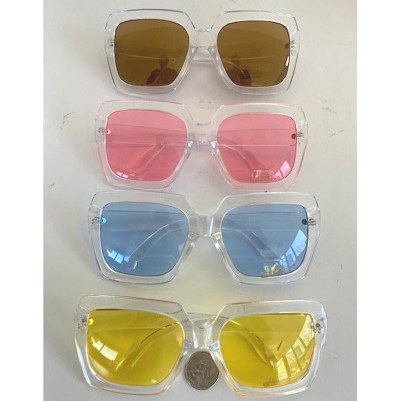 You'll look like you belong in a wild disco in these unisex oversized glasses with square clear frames and fun colored lenses. Available in pink, blue, smokey brown or yellow plastic lenses. You have tons of costume options with these classic glasses. They are perfect for disco, 1970's, 1980's, pride, rock stars, divas, Elton John, theatrical productions, Halloween, cosplay, everyday looks and more. Other costumes and accessories (wigs, other jewelry, theatrical makeup, hair extensions, face jewels, gloves, footwear...) are sold separately on our page – subject to availability. One size fits most teens and adults. These glasses are not for vision assistance.