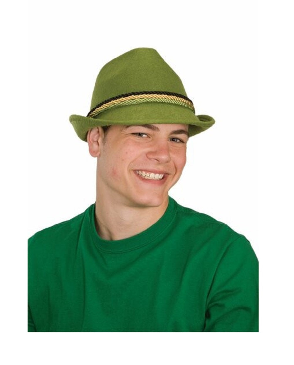 This green Bavarian fedora hat (hat only) is perfect for Halloween, Fall Festivals, elves, Oktoberfest, St. Patrick's Day, theatrical productions, cosplay, theme parties, Mr. Wormwood from Matilda, and school plays and projects such as the Sound of Music. Be the highlight of any party when wearing this stylish felt alpine hat. Internal circumference measures approximately 22 1/2" (57 cm). Has a Black, Green, & Gold Rope Band. Made of stiff felt. Other costumes and accessories (facial hair, wigs, glasses, theatrical makeup...) are sold separately on our page - subject to availability.