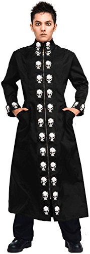 This unisex Skull Duster Coat is perfect for punk, goth, vampires and other dark characters for Halloween, parties, cosplay, rock stars, movie stars and more! Not included: pants, shoes. Other costumes and accessories (masks, theatrical makeup, gloves...) are sold separately on our page – subject to availability. Fits approximately up to size 9 for a Teen Girl, for Boys it fits up to 40" chest, Bust 32" to 34", Waist 24" to 26". Costumes typically run a little smaller than regular clothing sizes. Please purchase accordingly.